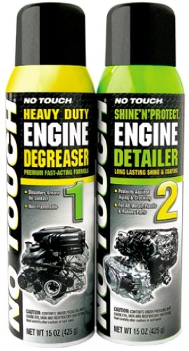 Permatex No Touch Engine Detailing Kit is a two-step system designed to keep your engine clean and protected. The bio-degradable Heavy Duty Degreaser specifically targets grease and grime that can clog up your engine. After your engine is degreased, the Shine'N'Protect Engine Detailer sprays on to leave a long-lasting protective coat and gives your engine that "like-new" shine. These safe and powerful formulas can be used on all metal, plastic and rubber parts.This website is a participant in the Amazon Services LLC Associates Program, an affiliate advertising program designed to provide a means for sites to earn advertising fees by advertising and linking to amazon.com